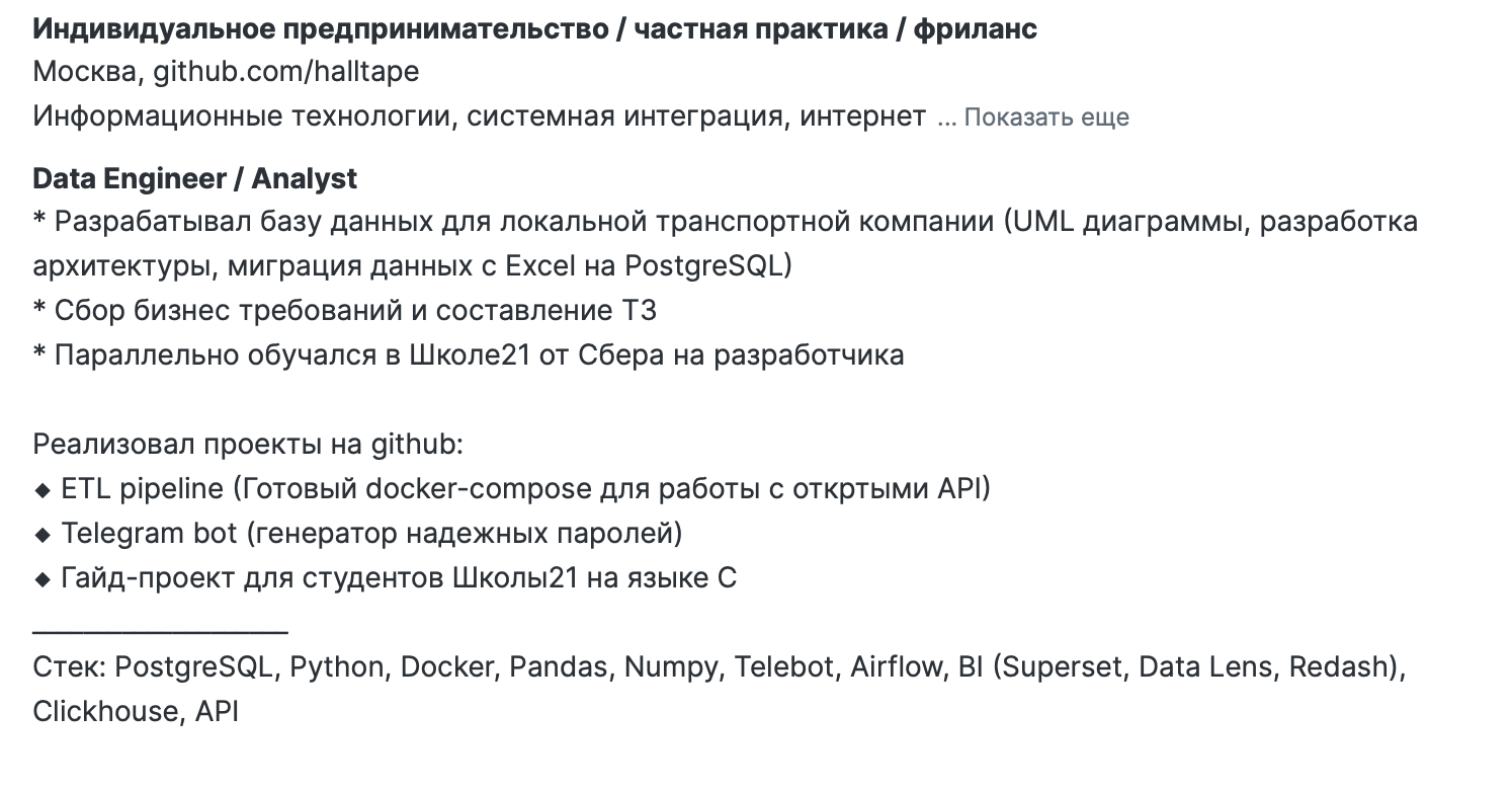 | HH.ru (opens in a new tab) | Linkedin (opens in a new tab) | Хабр Карьера (opens in a new tab) |
