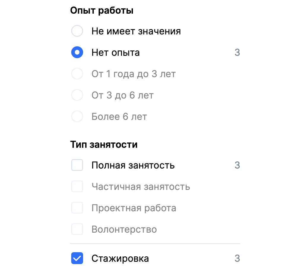 Чтобы попасть на тех собес, вам нужно пройти автофильтры рекрутеров по годам опыта. Важно, чтобы в вашем резюме была проставлена именно правильная цифра. Стажировок для НЕ СТУДЕНТОВ мало. Есть конечно компании, которые вас нанимают стажером или джуном, но перепродают большим бигтехам, как сеньера. Разницу естественно забирают себе. Справедливо ли это - решать вам. Мне такой подход не нравится.